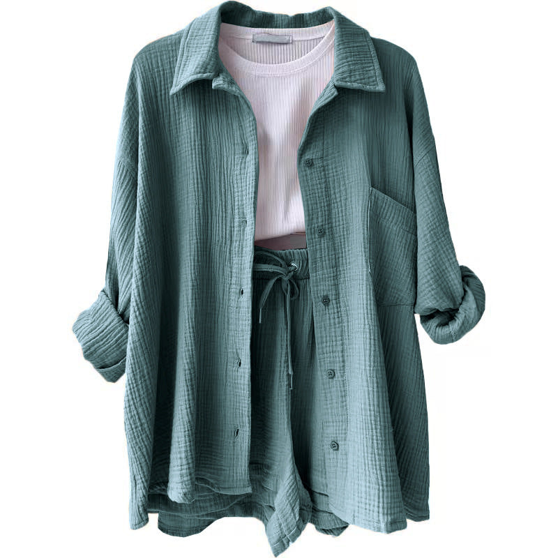 The KELLIE Elegant Two-Piece Set combines effortless style with ultimate comfort. Perfect for lounging, this set offers a soft, breathable fit that keeps you cool and relaxed all day. Whether you're at home or stepping out, this versatile two-piece outfit gives you a chic look with minimal effort. Ideal for any casual occasion.